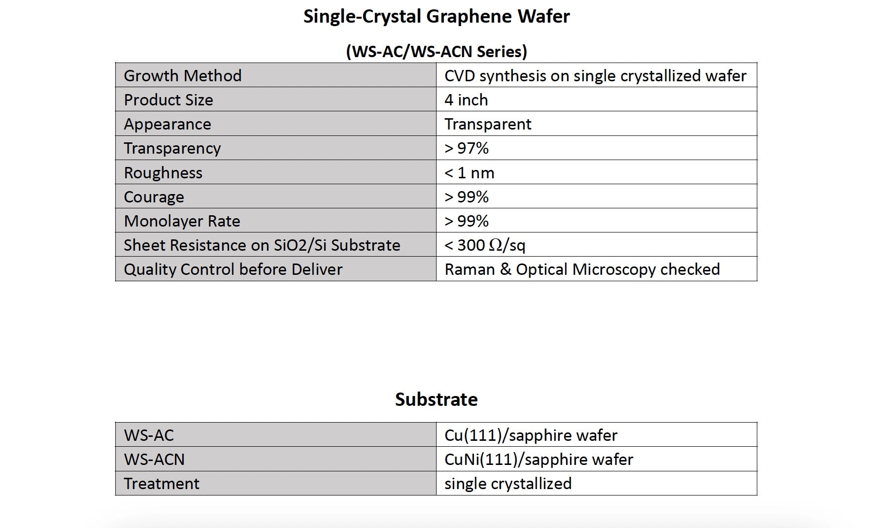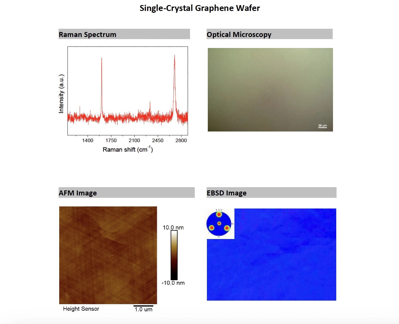 Compared with ordinary CVD graphene films, single crystal graphene wafers have higher flatness, better mechanical properties and ultra-high uniformity. Graphene is used in high-performance electronic and optoelectronic devices. Single-crystal Graphene wafers are ideal materials for the integration of high-performance electronic and optoelectronic devices.